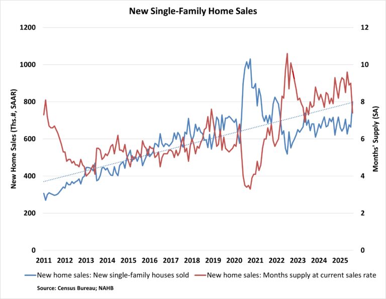 However, the Census Bureau’s estimate of new home sales is often volatile from month to month and is subject to significant revisions. Despite the sharp monthly increase in estimated August sales, NAHB expects a gradual improvement in new home sales, supported by a recent interest rate cut and a downturn trend in mortgage rates. Accordingly, it is possible the August Census reading will be revised lower in next month’s reporting.
